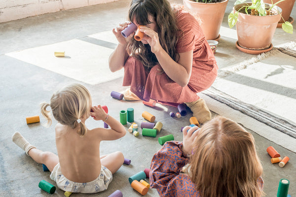 This set of 72 pieces favors versatility and the variety of game possibilities promote creative and divergent thinking. The different types of tubes help the eye-manual development, using some as a kaleidoscope and the others as a possibility of constructions and creation of imaginary worlds. Some can be seen as trees, buildings, cars, … It also allows the development of logical-mathematical thinking through the classification, grouping and association of elements according to the color and shape of the elements that compose it. The mini Lola and the different tubes also invite the symbolic game and the creation of Mini Worlds.