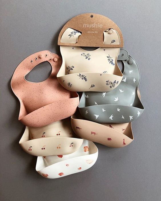 - Keep your little one feeling comfy and clean with our fun-loving collection of silicone bibs. Designed in Sweden, mushie bibs feature classic patterns capturing a look that's both timeless and elegant.